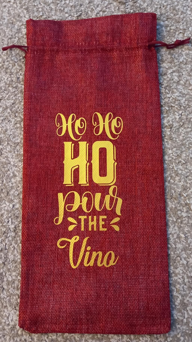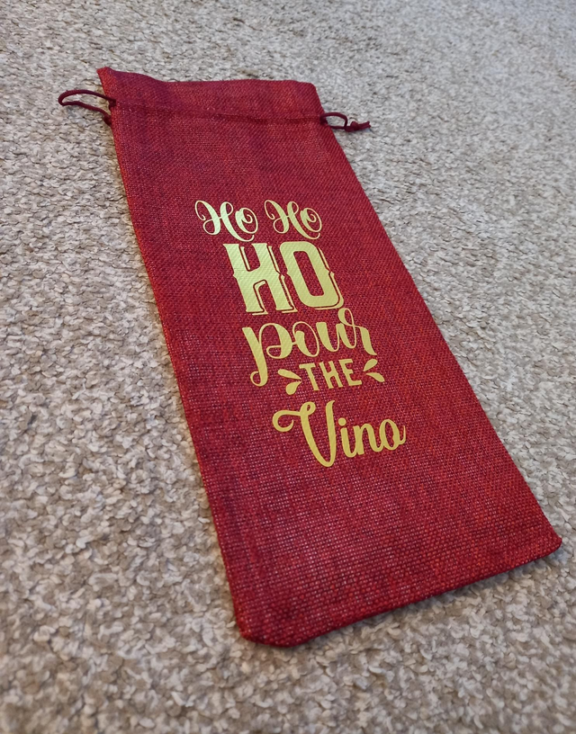 Christmas Wine Bottle Hessian Jute Bag with "Ho Ho Ho Pour The Vino" quote Perfect gift and reusable Postage £2