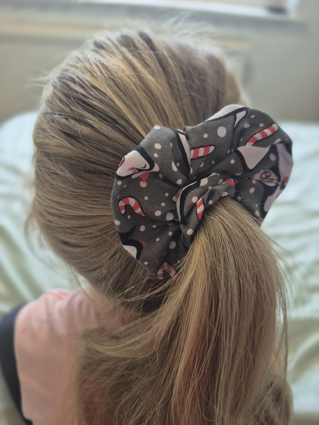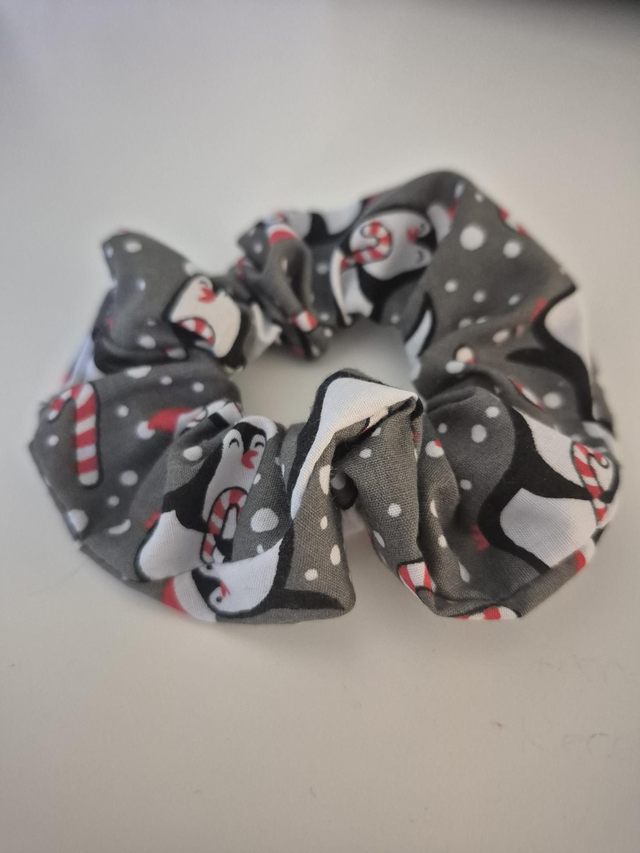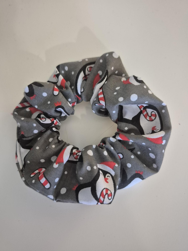 Grey Penguin Christmas Hair Scrunchie